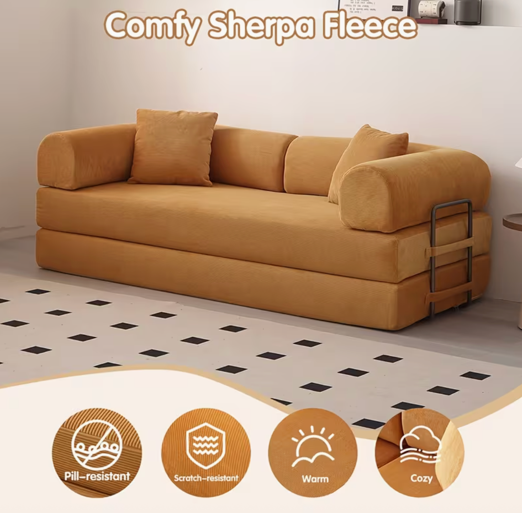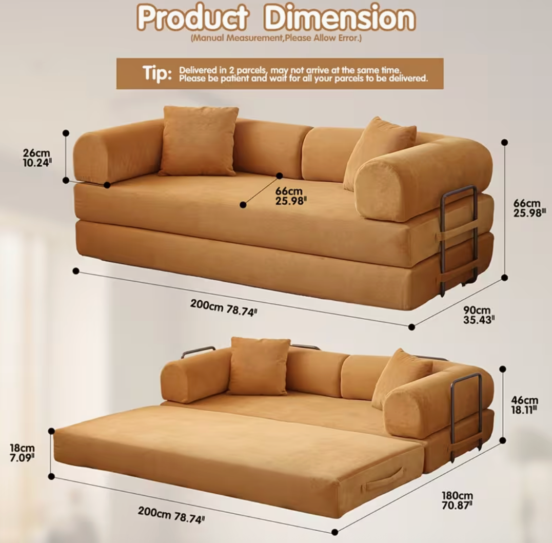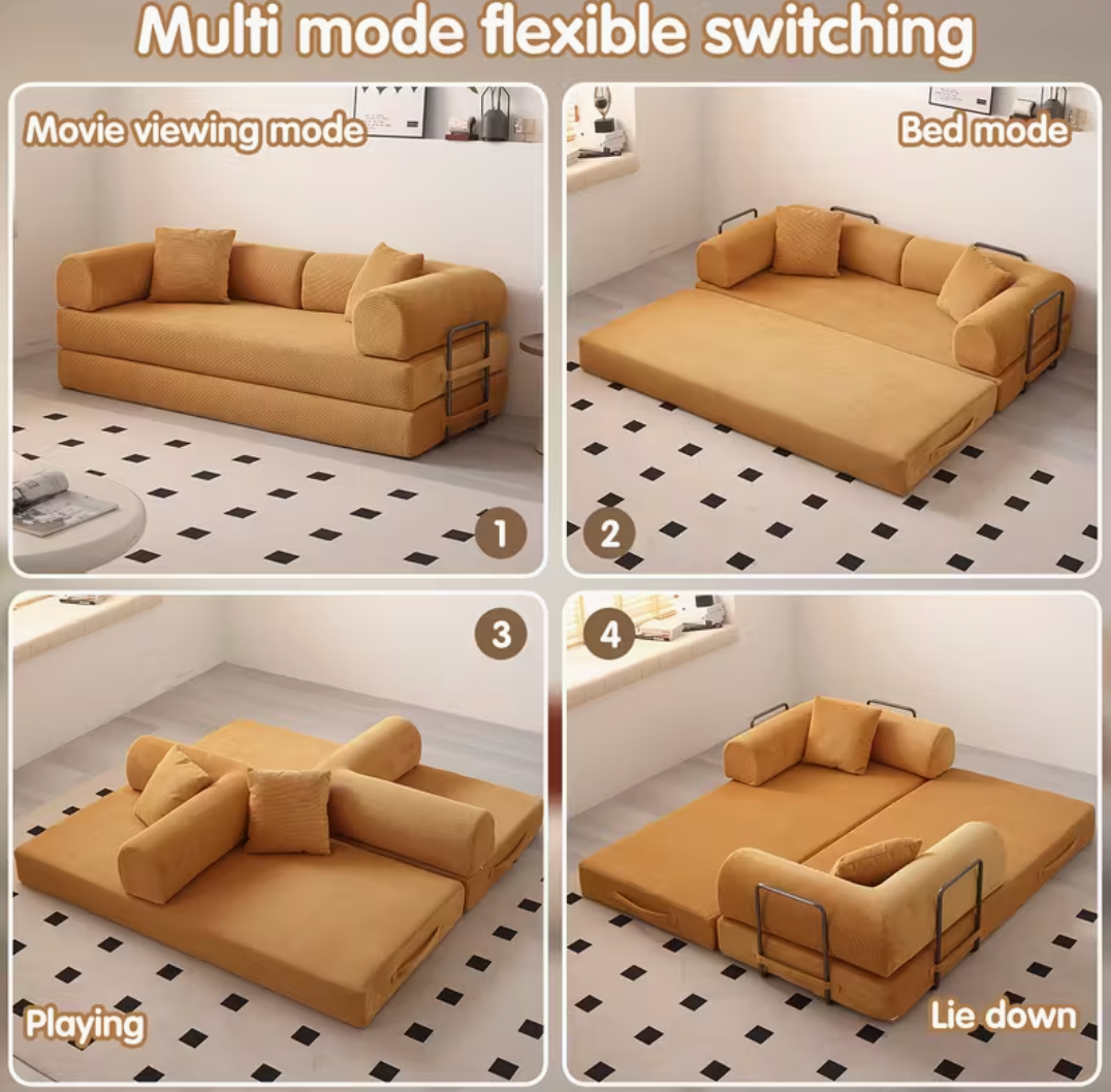 Gracias a su diseño práctico y funcional, este sofá cama es ideal para recibir visitas o para optimizar el espacio en viviendas donde cada metro cuenta. Funciona perfectamente como sofá principal durante el día y como cama auxiliar cuando lo necesitas.